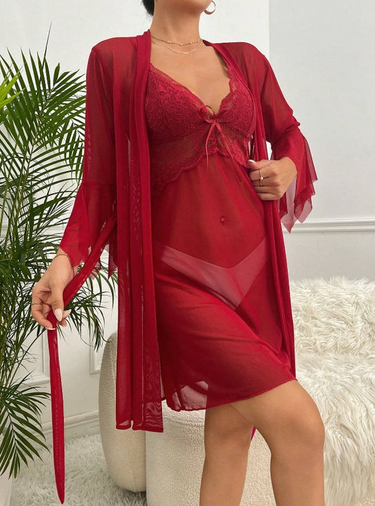 بيجامه شورت مزوده بدانتيل من عند الصدر