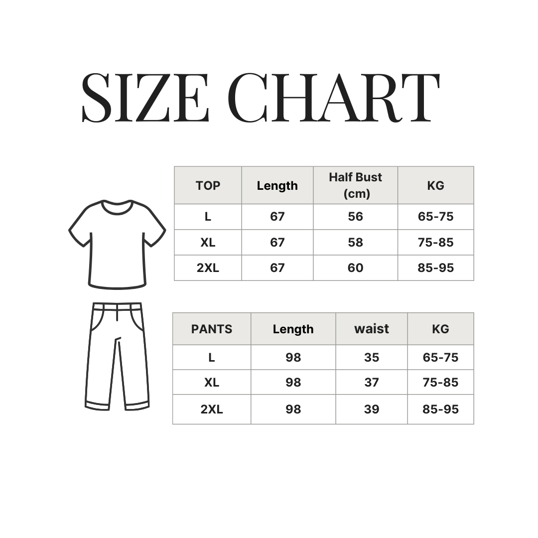 الوزن إرشادي فقط وقد يختلف حسب شكل الجسم، ويُفضل الرجوع لجدول المقاسات لاختيار المقاس الأنسب