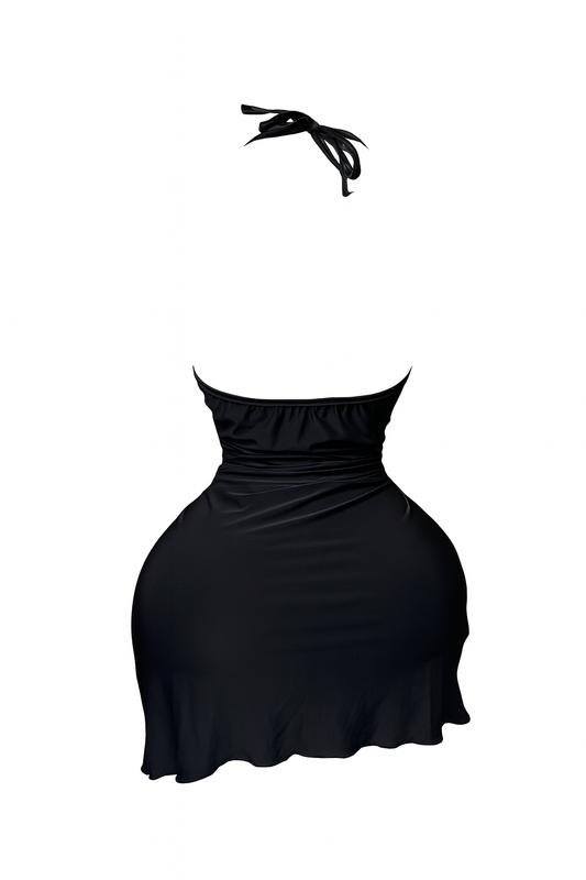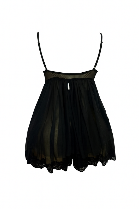 لانجيري اسود شفاف مزود بقصه من الصدر