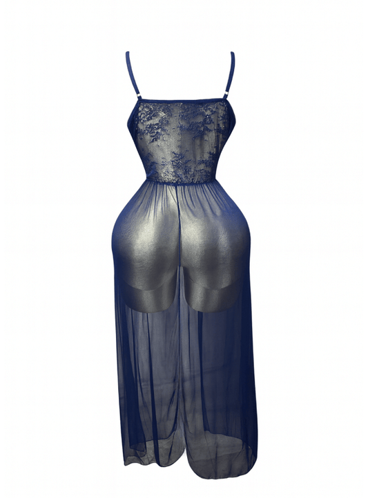 لانجيري طويل شفاف بفتحتين من الجانبين