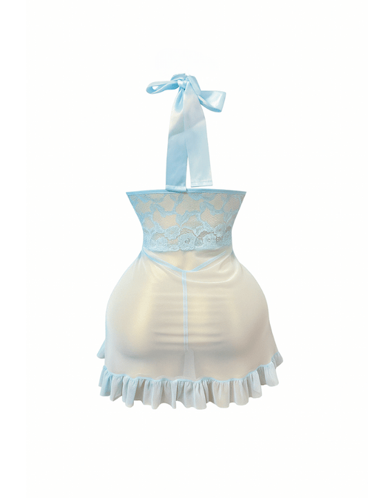 لانجيري ابيض ستان مفتوح من الجناب ومزود بدانتيل