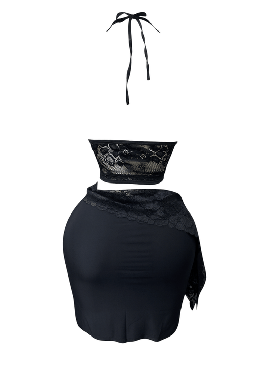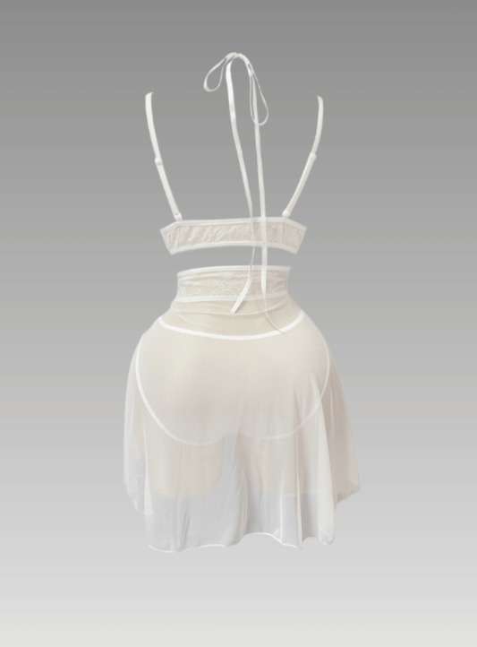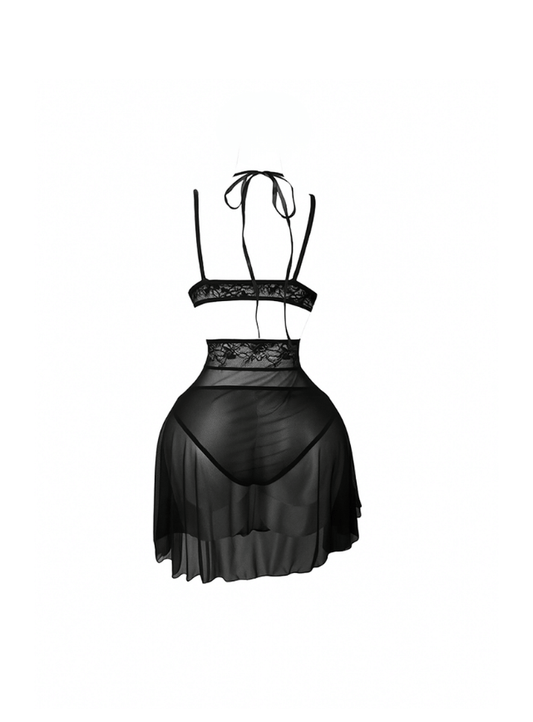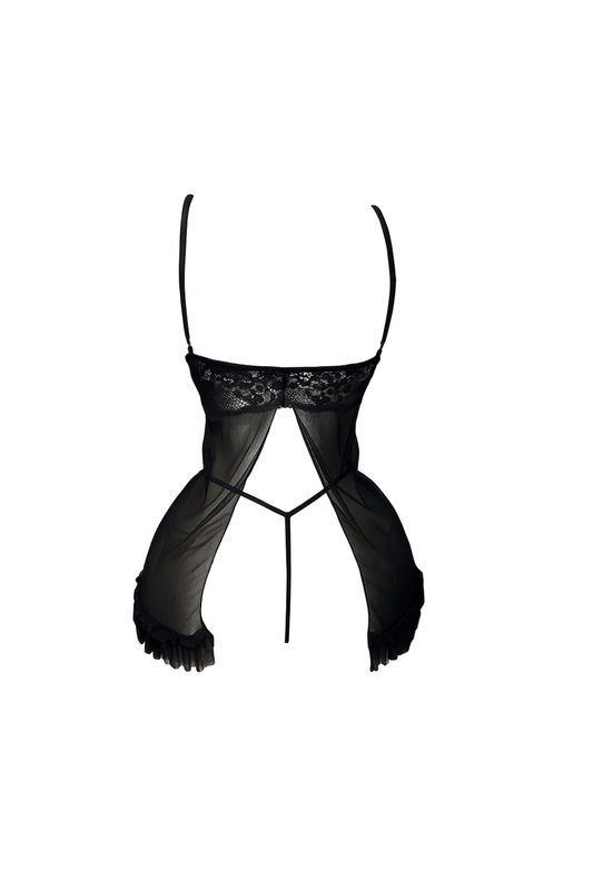 لانجيري قصير مزود ب دانتيل وفاتحه من الضهر