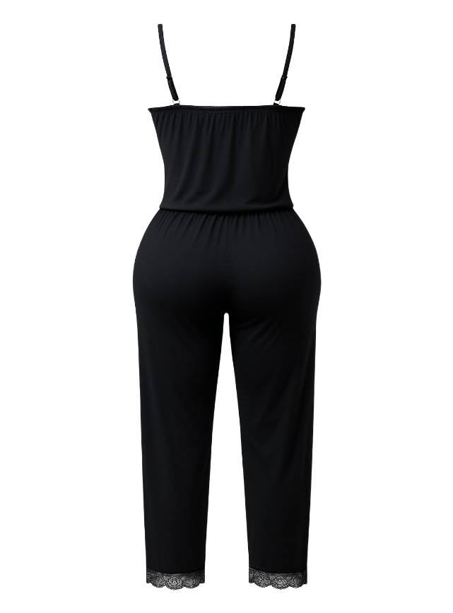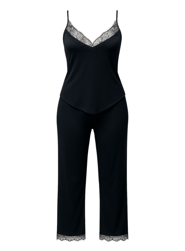 بيجامة بنطلون بحماله رفيعه مطعمه بدانتيل