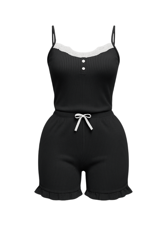 بيجامة شورت مزوده بأزرار من عند الصدر ودانتيل
