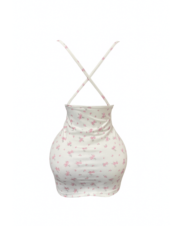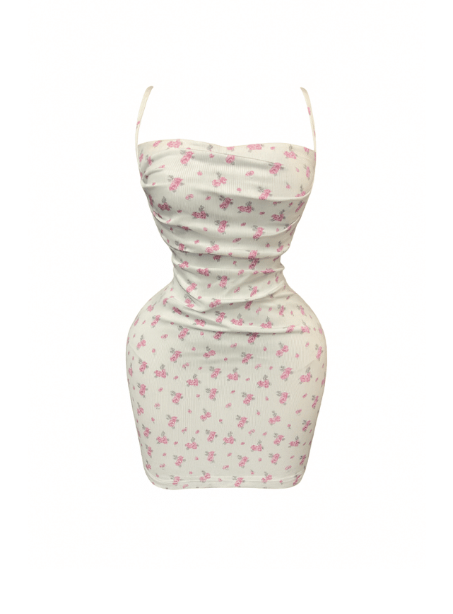 دريس قصير بطبعه الزهور ومزود بقصه من الضهر