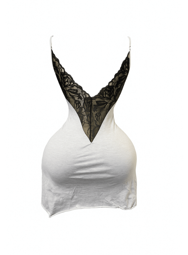 كاش قصير مزود بدانتيل من الضهر والصدر
