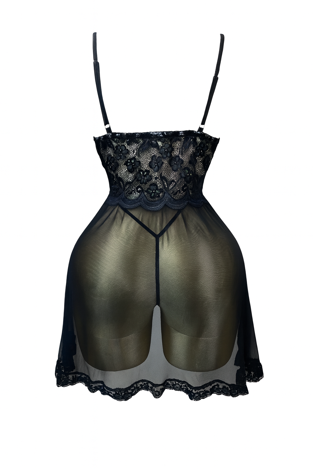 لانجيري شفاف مزود بدانتيل من عند الصدر