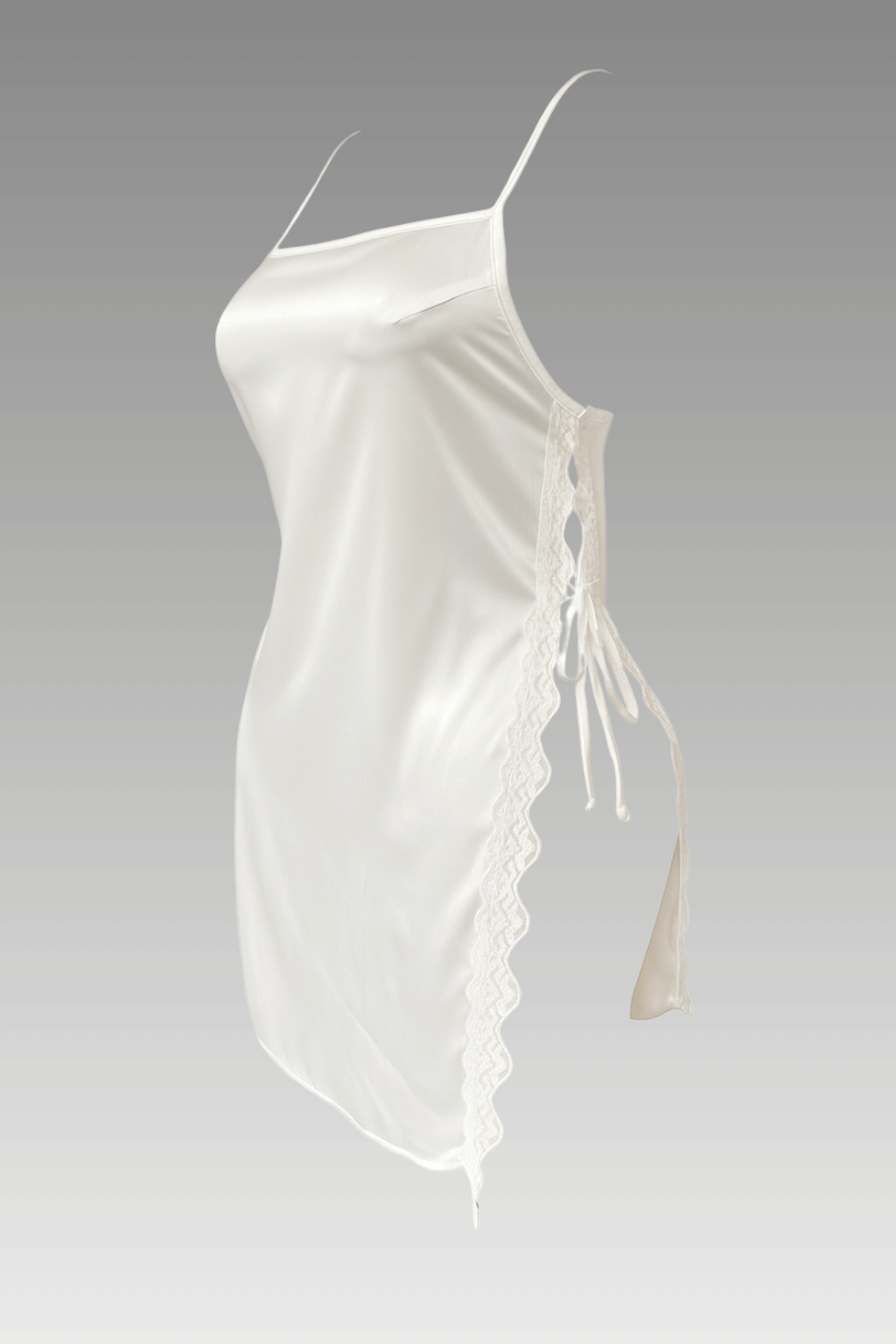 لانجيري ابيض ستان مفتوح من الجناب ومزود بدانتيل