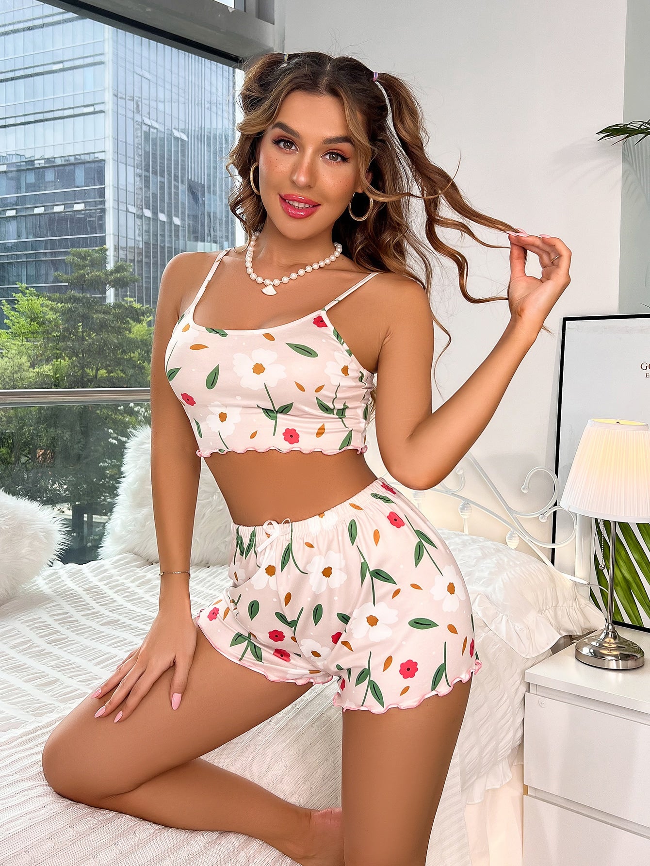 بيجامه شورت بحماله رفيعه بطبعه الزهور